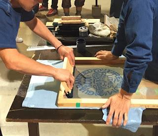 こちらも恒例となりました、無地の藍染めTシャツに、その場で好みの柄を選んでシルクスクリーンでプリントし、ご自分だけの1枚が作れるイベントを行います。