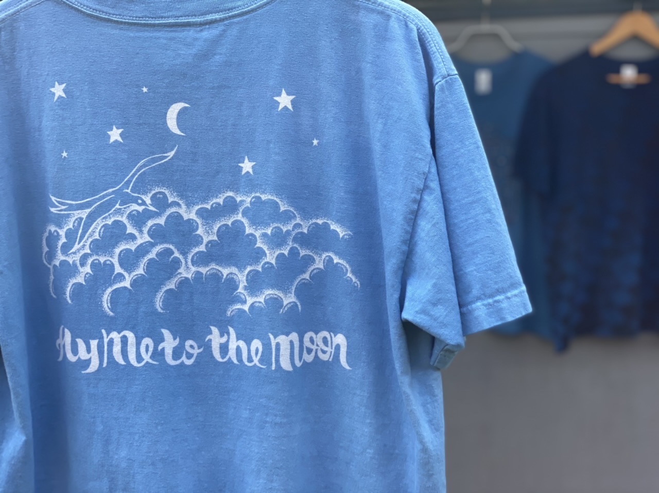 藍染に馴染みのない方でも手に取りやすいTシャツは、濃淡の違う種類が並ぶ予定です。